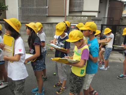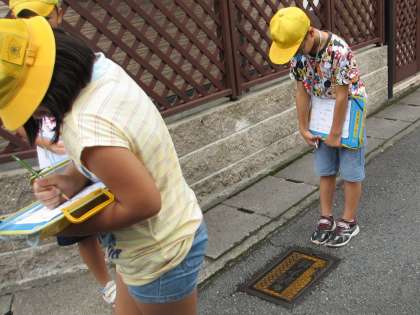 あっ,消火栓を発見!マンホールの色が黄色くなっていて分かりやすいね。
