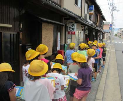 「あっ!あんなところに消火器があったよ。非常ベルもあるね。」たくさん発見がったようです。地図にまとめてみると,たくさんの防災設備が校区にもあることが分かりました。これからどんどん学習を深めていくのが楽しみですね。