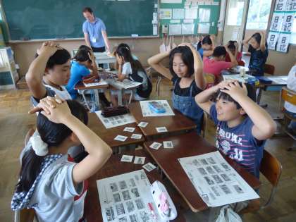 道案内の仕方を学ぶために必要な表現を様々なゲームを使って学習しています。