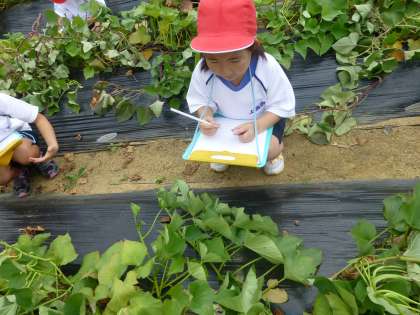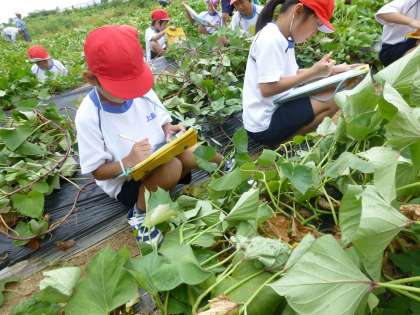 さつまいもの葉やつるの観察をしました。