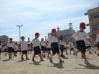 今日は,初めて運動場に出てダンスの練習をしました。