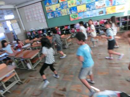 廊下を通る子どもたちも教室から音楽が聞こえると