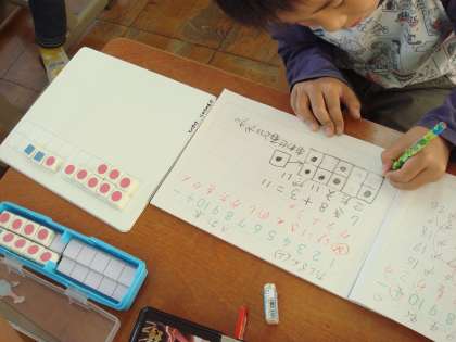 今日は、「10のまとまりをつくると計算しやすい。」ということを見つけました。