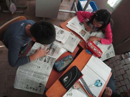 国語の学習では,「アップ」と「ルーズ」を伝えようという学習をしています。伝え方にはいろいろな方法があることを知った子どもたち。今日は,実際に新聞を広げてアップとルーズの写真を探しました。そして,その写真から分かることと分からないことをまとめていきました。しっかりと見極めることができていましたね。