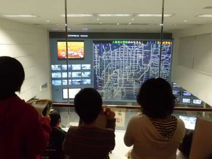 次に見学したのが,交通管制センターです。最新の道路情報を把握して、交通の流れをスムーズにするためにコンピュータで信号機や交通情報板を操作するところです。細かい取組に驚きの子どもたちでした。