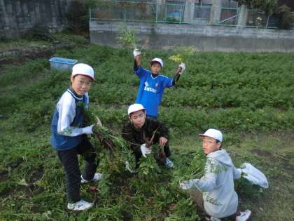 地域の農家の方の畑を借りて,育てていた金時にんじんを