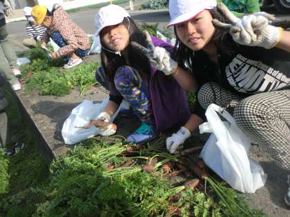 収穫したにんじんは,家庭科の調理実習でも使います。