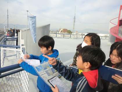 「竜巻について」では,まず屋上に出て,風速や気圧など,
