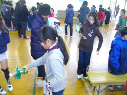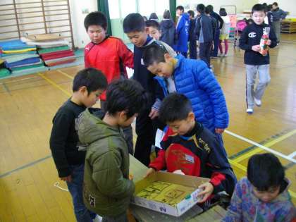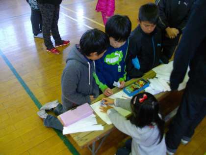 今日は1年生のきらきら学習発表会がありました。5年生は,1年生の「季節と遊ぼう 秋」の発表を見に行かせてもらいました。どんぐりや落ち葉を使って,的当てや写し絵,けん玉,すもう,楽器などたくさんの発表に参加させてもらって楽しみました。