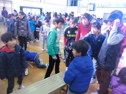 1年生が体育館で開催したフェスティバルに参加しました。