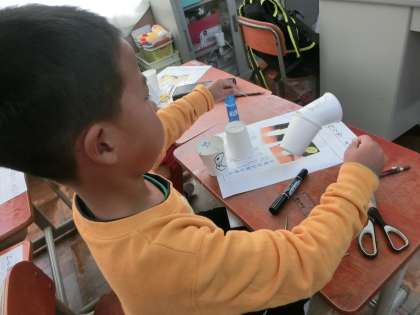国語の学習で紙コップを使ったおもちゃを一つ作ってみました。