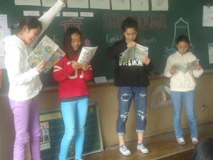 ALTのダレン先生の最後の授業に英語劇をして発表し合いました。準備のために役割を決めたり,発音の練習をしたりして,がんばりました。