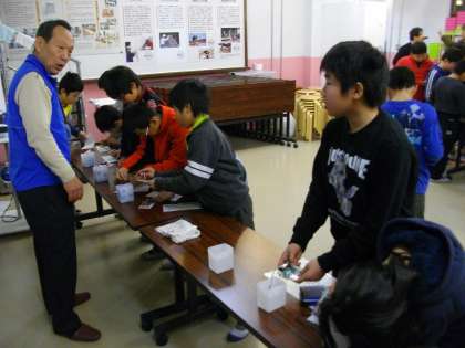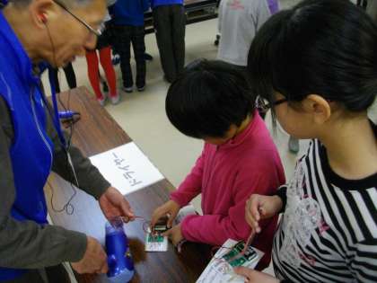 できた温度計で実際にセンサーが正常に動くかやってみている様子です。