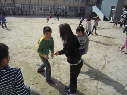 今日は,研修で来られた方がクラスを見に来られました。そこで新しい遊びをすることにそれは,「陣取り」です。新しい遊びに大盛り上がりの子どもたち。楽しくみんなで遊ぶことができましたね。