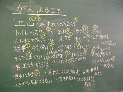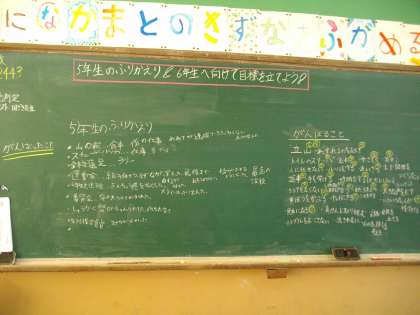 子どもたちから出た意見は,黒板に書いていきました。そして,みんなで確認しました。「今できることは,しっかりやろう!」「当たり前のことを当たり前にしよう!」ということにまとまり,残りの5年生をがんばっていきます!