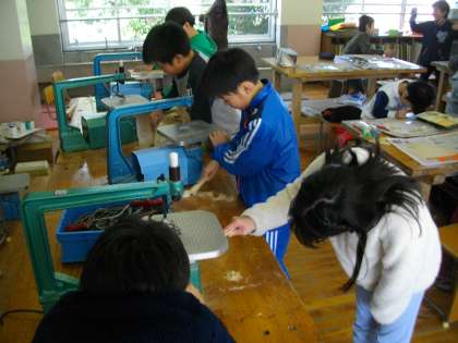 作品の仕上がりが楽しみです。電動のこぎり機の掃除も最後までがんばっていました。