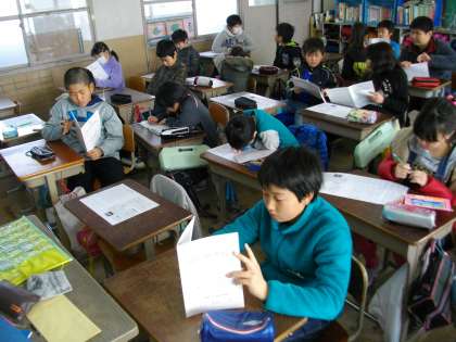 1年間の子どもたちの成長を「けんこうのきろく」に書いています。子どもたちは,自分の成長を興味深げに見ていました。子どもの成長ってすごいですね。