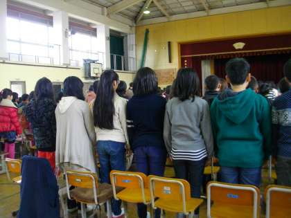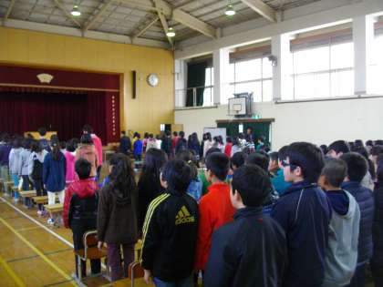 今日は初めて,体育館で5・6年生合同で卒業式練習をしました。程よく緊張感を持ちながら進めることができました。本番へ向けて気持ちを高めていきます。
