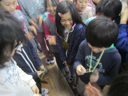 今日は,にぎやかパーティをしました。雨だったので,教室の中でみんな遊びをしました。遊びはじゃんけん列車です。みんな大盛り上がりでしたね。優勝するとメダルをもらえて大喜びの子どもたちでした。