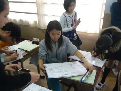 卒業アルバムを配りました。子どもたちはみんなで一言を記入してもらおうと大忙しでした。ほほえましい光景でした。