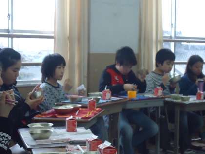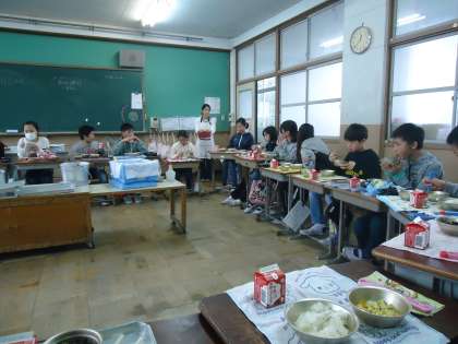 「今日は人生で最後の給食当番や!」という声がして驚きました。給食をこれから先に食べない子どもたちもいるのだなと改めて思いました。最後の給食はみんなで円になって楽しい給食となりました。また,栄養教諭の新内先生の「食べ物を選んでいく」というお話にもみんな耳を傾けて聞いていました。
