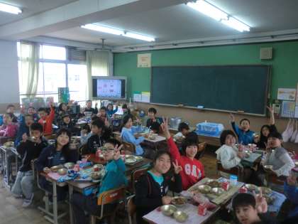 早速,大盛りにして,モリモリ食べる子どもたちが