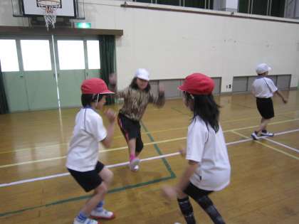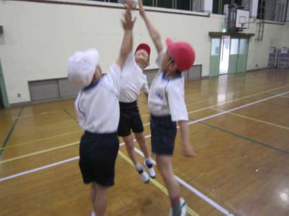 今日は雨だったので,体育館で体ならし運動をしました。とっても盛り上がって楽しい時間になりましたよ。