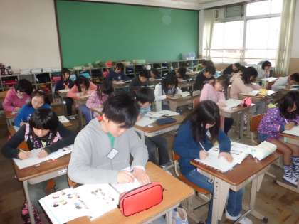 国語の最初の単元です。1分間で隣の人にインタービューをし,