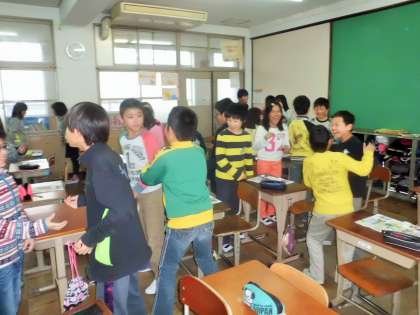 ABCソングや7ステップを歌ったあと,英語での挨拶と自分の名前の
