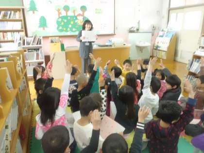 図書館の使い方について学習しました。図書館には,子どもたちが好きそうな絵本がたくさんあります。子どもたちには,たくさん本に親しんでほしいと思います。