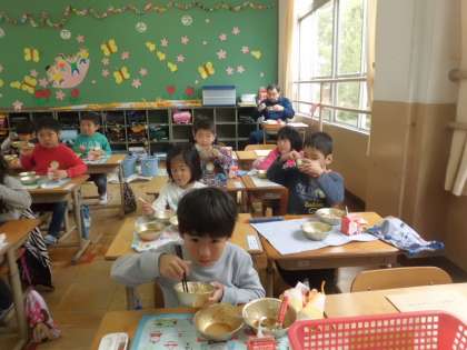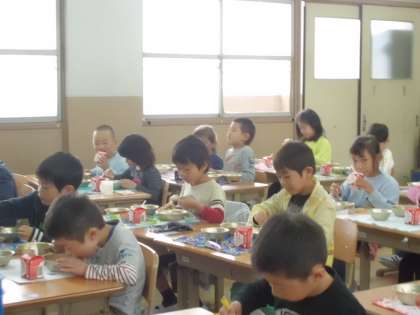 「小学校の給食はおいしい。」「今日もおかわりするよ。」とはりきる子もいれば,苦手なものが出て困った顔になったり・・・でも,毎日楽しみな時間です。
