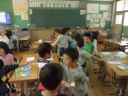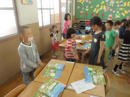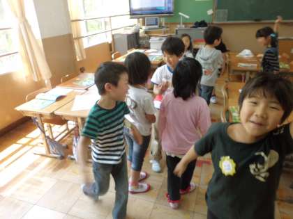 ぞうさんになって歩いたり,握手をしたりして楽しく歌いました。みんななかよく取り組んでいました。