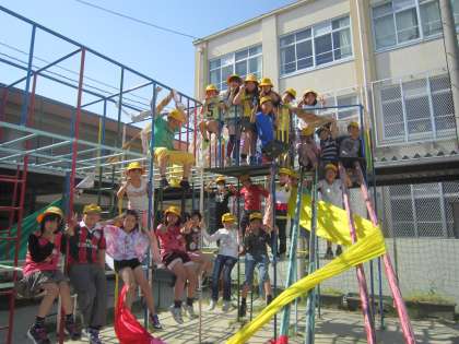 今日は,教室に引き続いて遊具を布で飾りました。とっても豪華な遊具になって大満足の子どもたちでした。