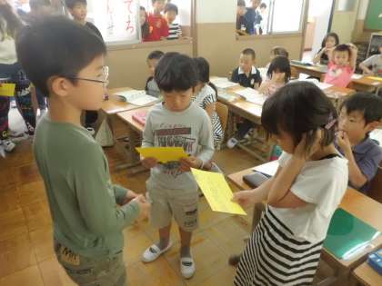 たてわり活動のリーダーとなる6年生と教室で顔合わせをしました。1年間のたてわり活動を楽しみにしている様子でした。