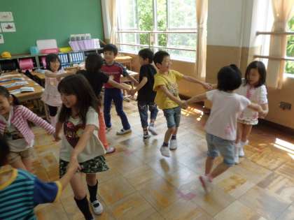音楽に合わせて花が開いたりすぼんだりするのを体を使って歌いながら表現しました。
