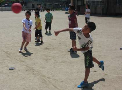 中間休みにみんなでドッチボールをしました。