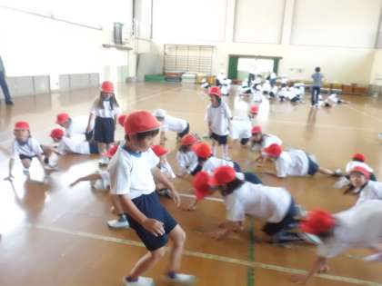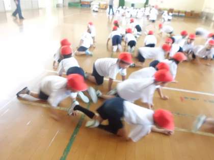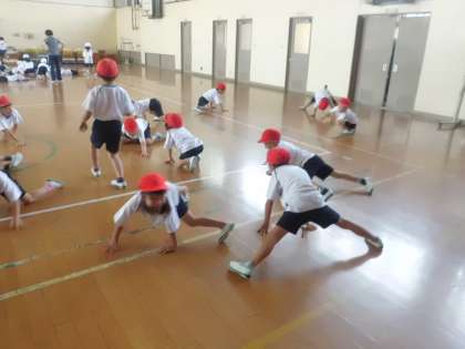 いろんな虫の特徴を考えて虫の動きを体で表現しています。おもしろい動きをこれからみんなで考えていきたいです。