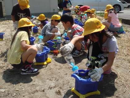 朝顔と葉っぱの形が違うことや,花の色が違うことなど,さっそくたくさんの発見がありました。