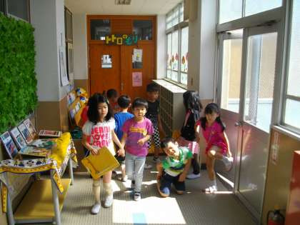 2年生のおにいさんとおねえさんに連れられて学校探検にでかけたよ。