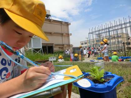 理科の観察に外へ行くと,4年生が