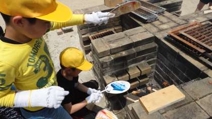 今日はみさきの家に向けた取り組みの一つで,飯ごうでご飯を炊きました。初めての火起こしに苦労しながらも何とか火を起こすことができました。