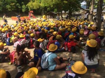楽しかった遠足も,あっという間に終了の時間。児童会本部役員のみんなによる解散式です。ふりかえりの時間,「1年から6年までのたてわりグループみんなで協力できてよかった。」「あっという間の1日だった。」など,1日のふりかえりができました。