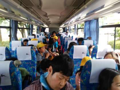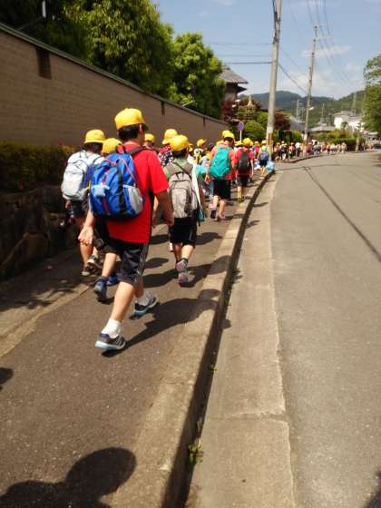 子どもたちを乗せたバスは,宝ヶ池を出発しました。約1時間で帰校します。
