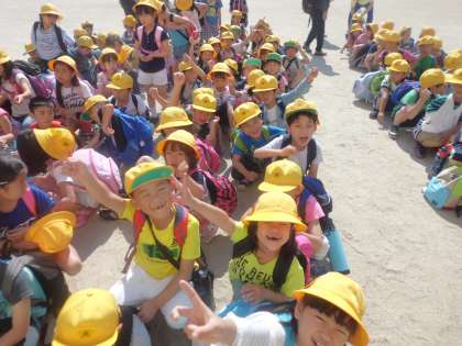 今年の全校遠足は最高の遠足日和でした。お兄さんお姉さんと一緒にラリーをしたりお弁当を食べたりして楽しく過ごせた一日でした。