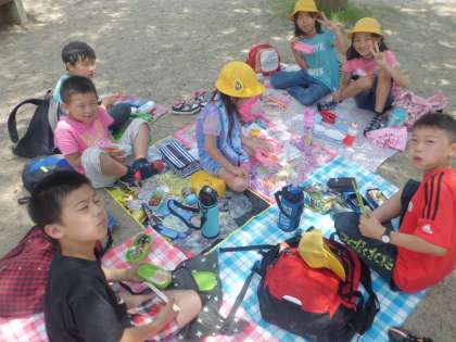 今年の全校遠足は最高の遠足日和でした。お兄さんお姉さんと一緒にラリーをしたりお弁当を食べたりして楽しく過ごせた一日でした。