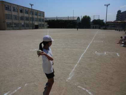 5年 体力テスト「ソフトボール投げ」