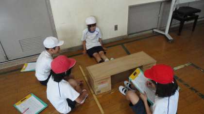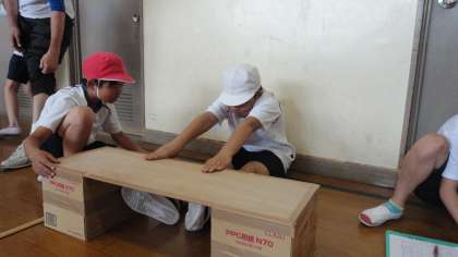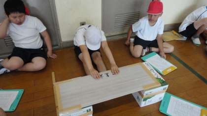 今度は体の柔らかさを測定します。前にしっかりおせたかな〜