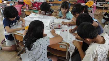 放課後も集まって,旗づくりをする姿が…えらい!完成めざしてがんばりましょう。