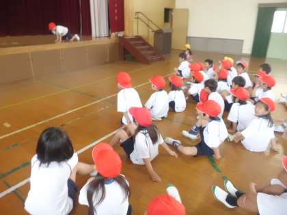 体育の「むしになって」では,最後に発表会をしました。工夫した動きをみんなで見せ合いました。