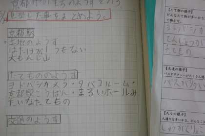 今日見てきた事,メモをしたことを教室でノートにまとめました。